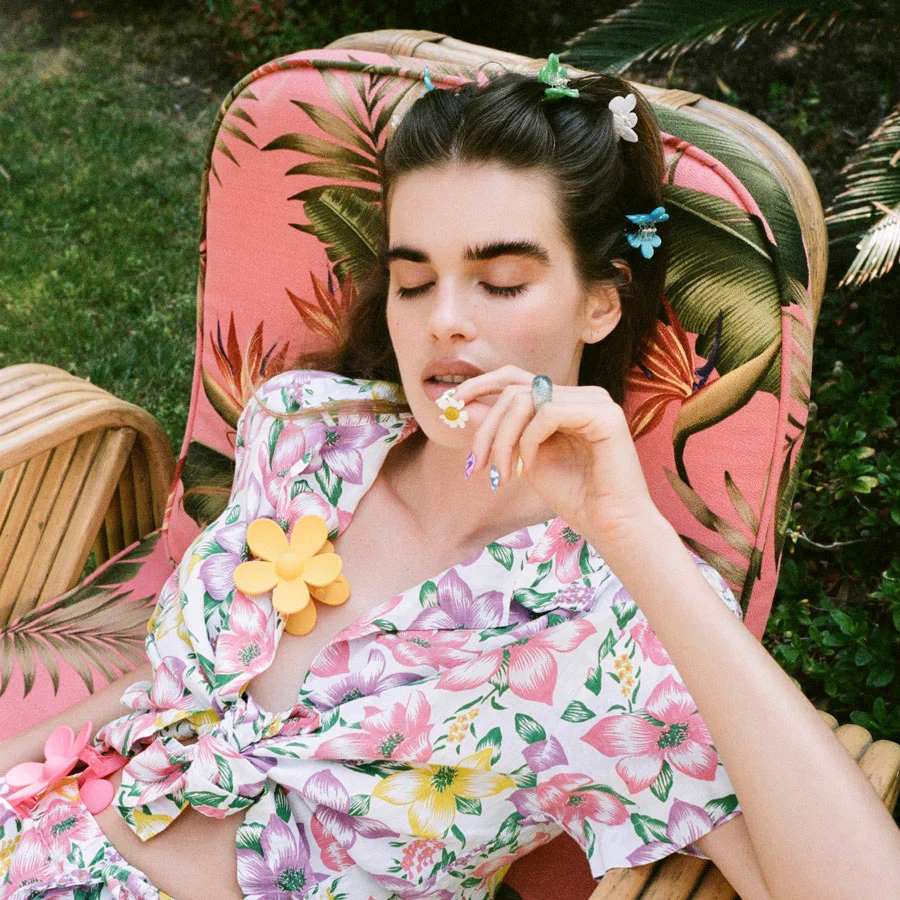 Our most-loved flower claw clip, but mini. Sold in a set of two, these baby clip sets can be styled to hold braids and fine hair.